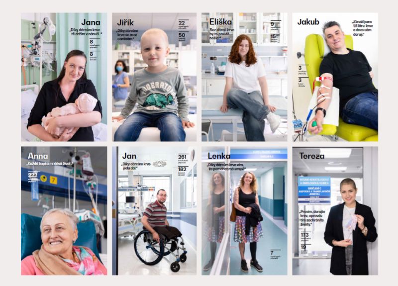 Každý z nás se může ocitnout v situaci, kdy krev bude akutně potřebovat. Stejně jako osm pacientů Fakultní nemocnice Brno. Jana ztratila v důsledku komplikací po porodu více než 4 litry krve. Jakub, Lenka a Jan měli velmi vážné úrazy, které vyžadovaly dokonce amputaci. Malý Jiřík zase potřeboval transfuze v rámci léčby leukémie stejně jako Eliška. Krev pomohla zachránit život také Anně a Tereze, které mají hematoonkologické onemocnění.